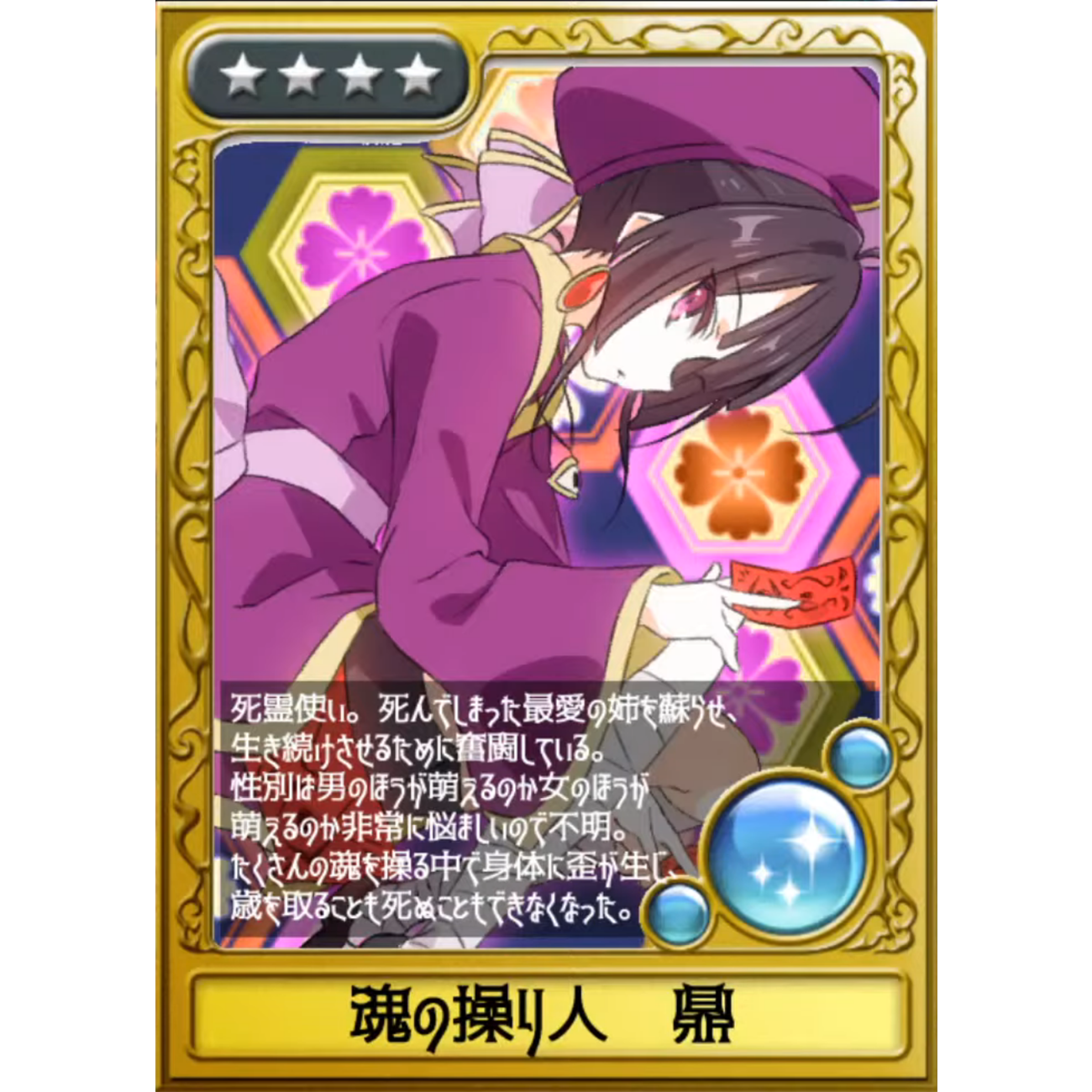 たくさんの魂を操る中で身体に歪みが生じ歳を取る事も死ぬこともできなくなった。