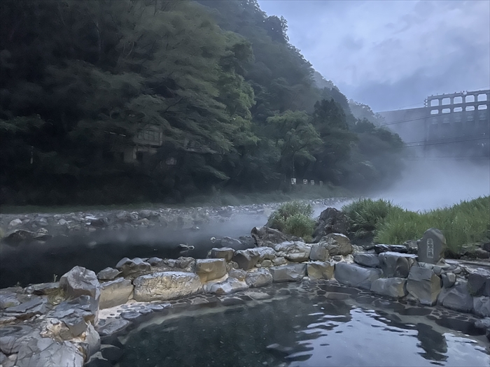 風呂場の近くに簡単な更衣室があり、河川敷の周辺には飲食店や売店、ホテル、お土産屋さん等がありますが、私が到着したころには売店等は既に閉まっていました。