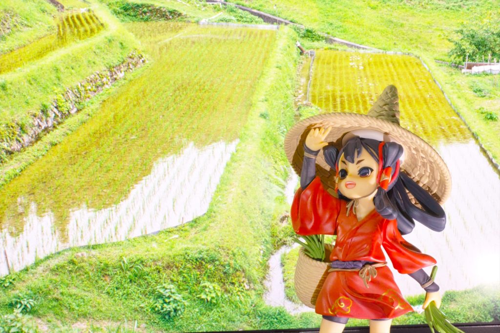 こちらは結構前に購入した、「天穂のサクナヒメ」のサクナヒメのフィギュアで右下から照明と左上からの照明と正面やや上気味からの照明で、同じく液晶ディスプレイの背景です。