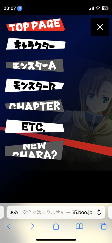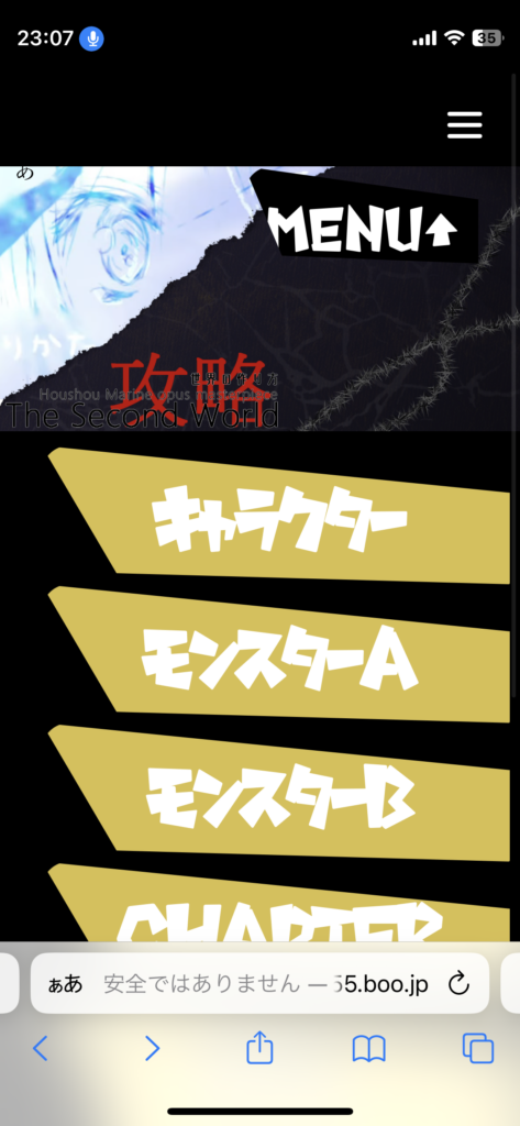 それから、宝鐘マリンさんの作ったゲーム「The second world」の攻略サイトのPC・スマホ対応版を作っている最中です。