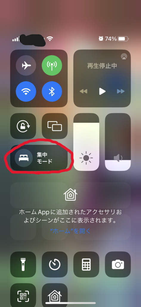 私のiPhone12miniの場合、バッテリーマークから左下にスワイプしたら下記の画面が表示されます。