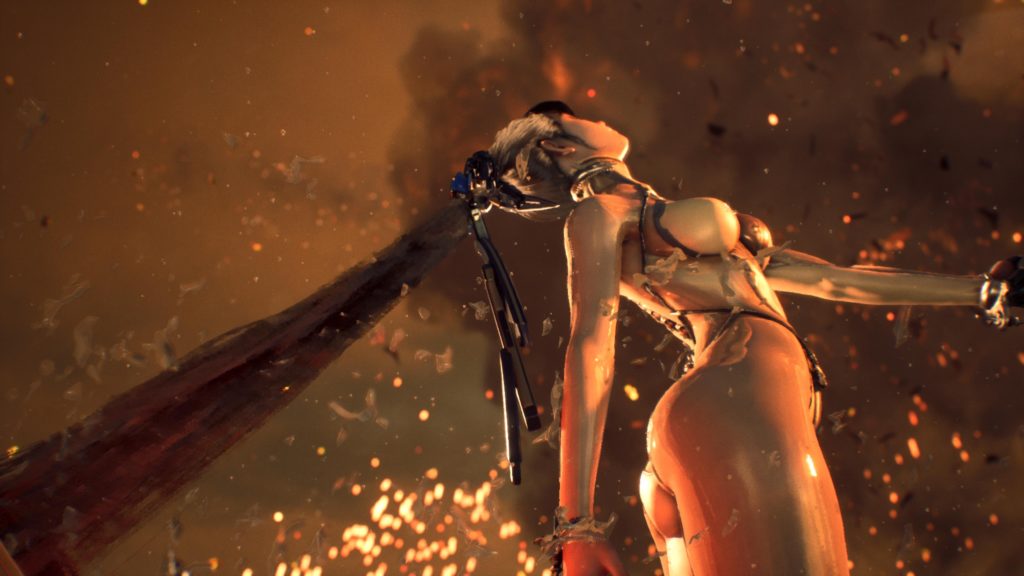 ポニーテールの髪留めの一部が、ブレードになるのでストーリー的にもポニーテールが必須の様で、ゲーム開発もポニーテールの動き方だけで、1年開発が伸びたようです。