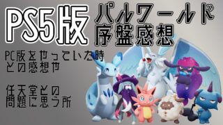ゲーム PS5版パルワールド序盤感想 まだ、十数時間程しか出来ていないのですが、PC版もやっていたので、その違いや以前やっていた時との違い等を書いていきたいと思います。現在2024.10.6対応しているのはPS5(PS4は未対応)・XBOX.X.S・Steamです。 その前に、... 2024.10.07 ゲームパソコン観想買い物・ガジェット