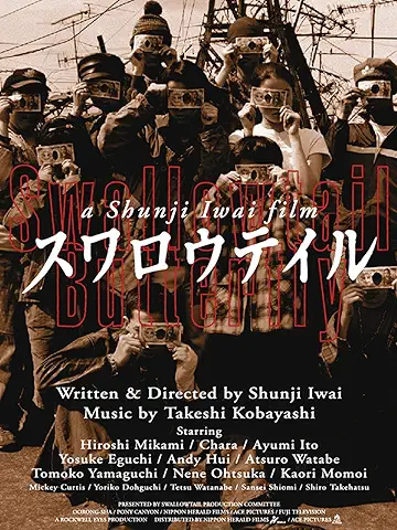 題名のスワロウテイルはアゲハ蝶の事で、名前も国籍も帰る場所もない移民2世の少女を中心に小規模の移民たちの夢・金を追うために日々生活してるなか、娼婦のグリコ、車修理や便利屋を営むフェイホン、簡素な野外パブを営むランなどの面々、とある事件をきっかけに移民たちの運命が変わっていく、と言う物語。